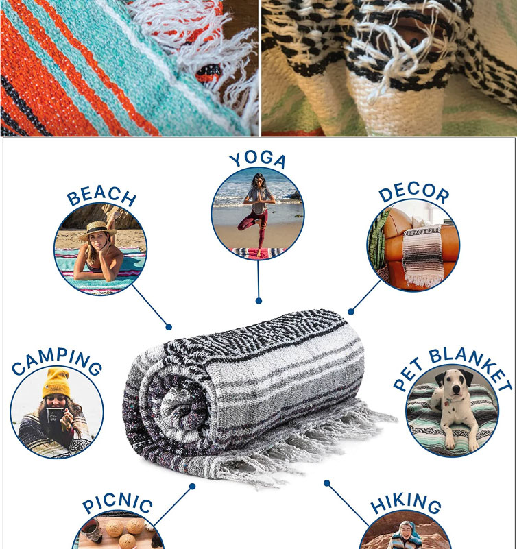 VERSATILE & STYLISH: Perfect for every adventure, these Mexican blankets are your go-to blanket for yoga, picnics, long summer nights, park blanket, summer blanket or to cuddle in while relaxing at home!