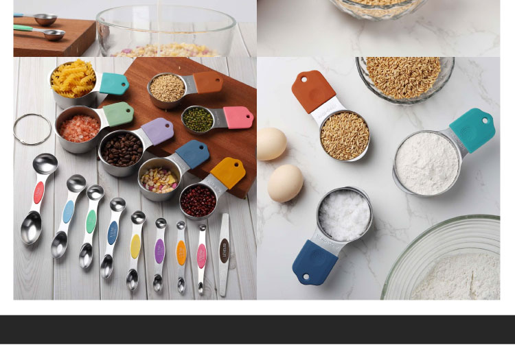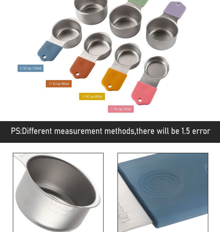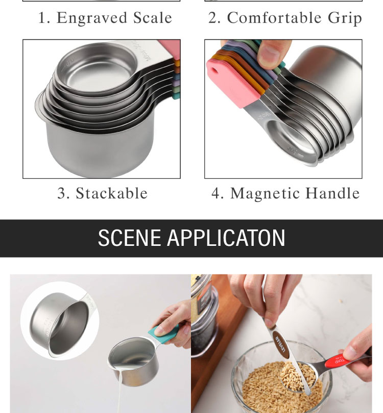 PREMIUM MATERIAL:The measuring set are made of food-grade 18/8 stainless steel,which is heavy-duty and durable,and safer than other material measuring set.Measuring set are often used to measure dry and wet ingredients in the kitchen.