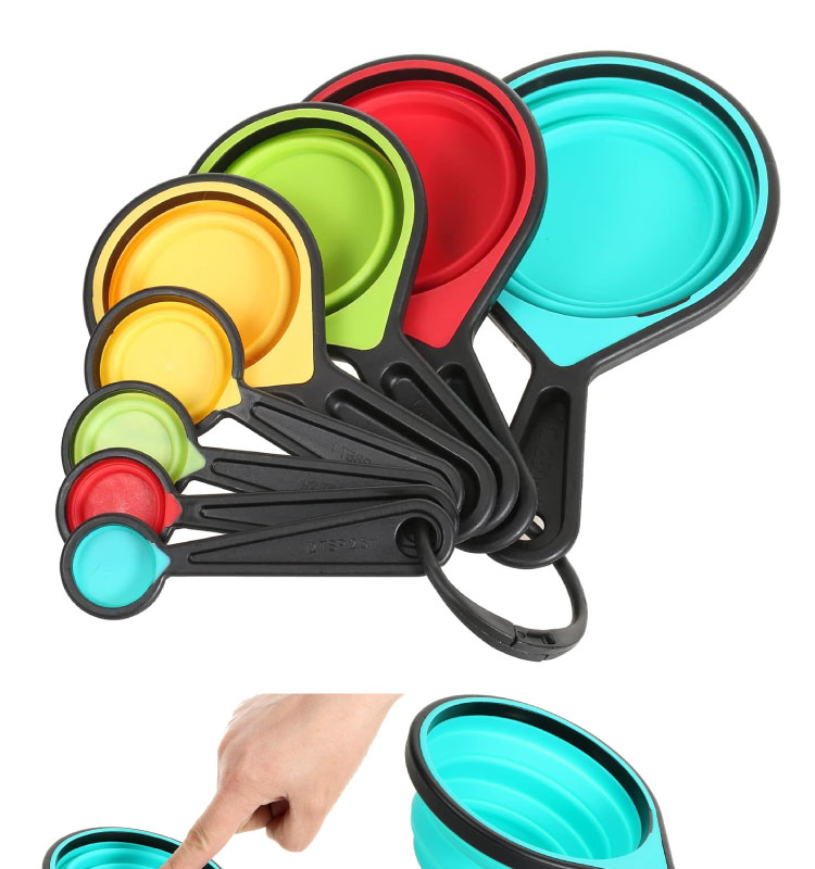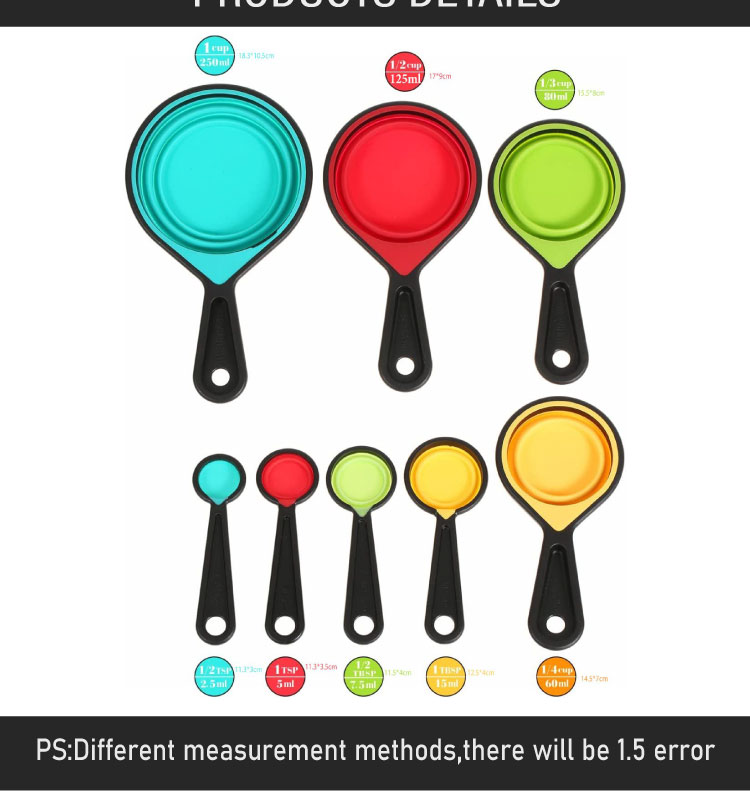 Ergonomic Design: The collapsible measuring cups are designed with ergonomic handles that fit comfortably in your hand, providing a secure grip as you measure ingredients. The flexible silicone material allows for easy scooping and pouring, making it a breeze to use in your cooking and baking.