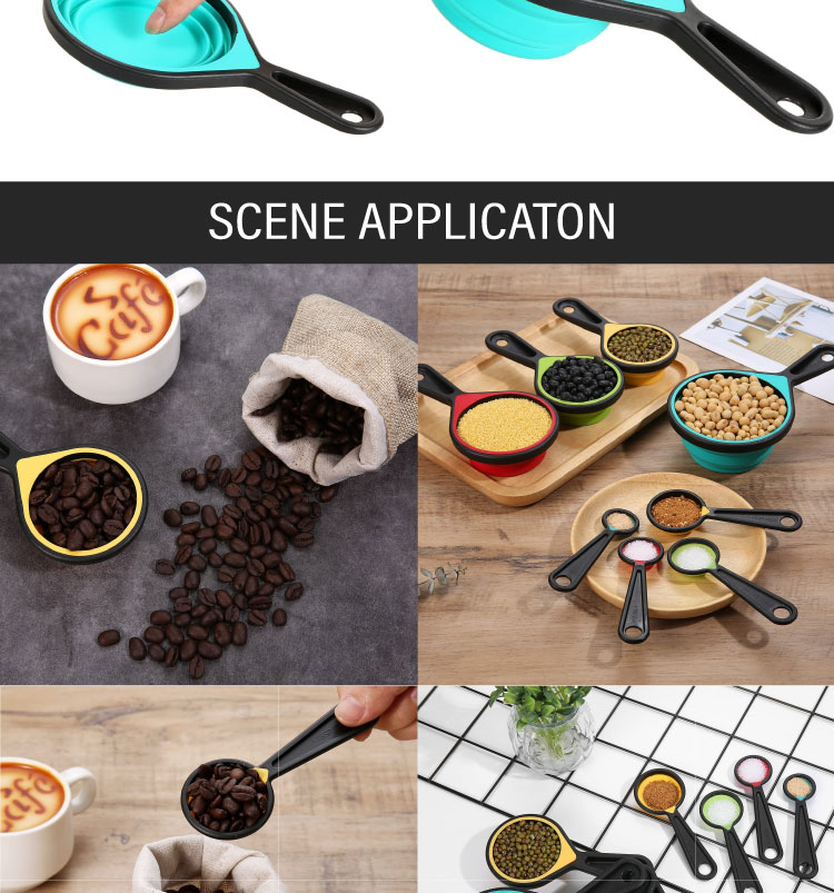 Convenient Folding Design: Our silicone measuring cup is designed with a unique folding feature, allowing you to save space in your kitchen drawer. Each spoon snaps into place securely, making it easy to unfold and use when you need it.