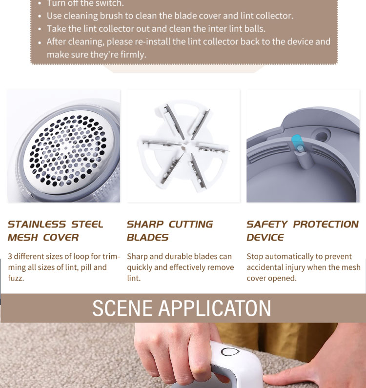Micro-arc craftsmanship 360° care for your beloved clothes, close fitting to the cloths and smooth removal of fabric fluff without leaving scratches. The design accurately sweeps all the angles of the big and small lint, clean the lint safely and quickly.