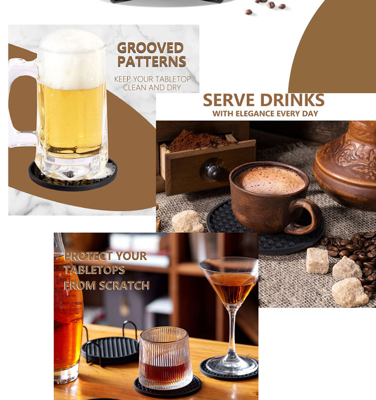 Silicone coasters dishwasher-safe,stain resistant, water resistant and heat resistant reusable.The high quality stand makes the coaster look nice and organized. Can be used for cold or hot drinks for any occasion,Allows always keep the desktop tidy while protecting the furniture.You can rest assured enjoy favorite Wine, Coffee,Beverages,Tea.It's one of the ways help you protect your precious table.