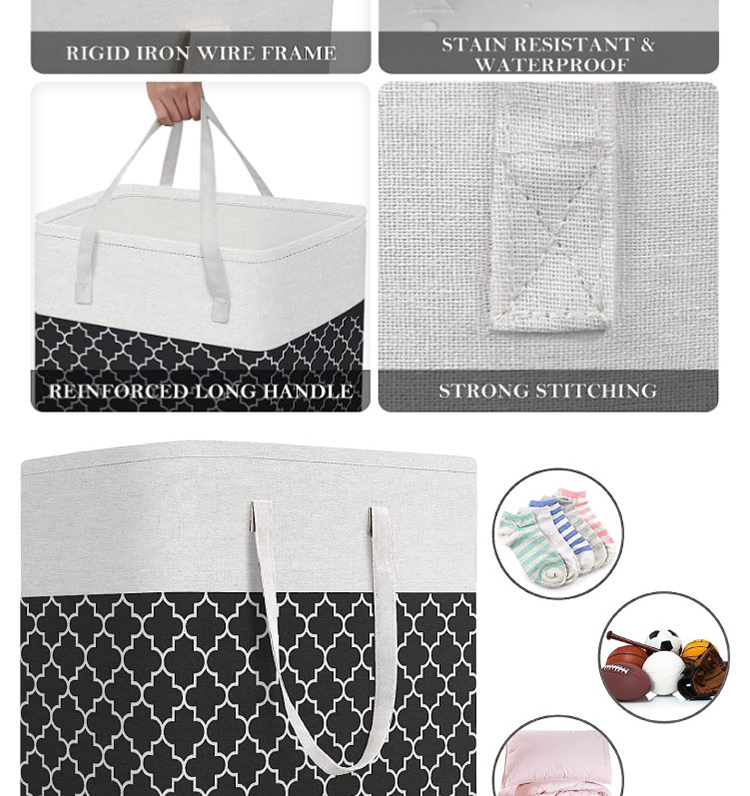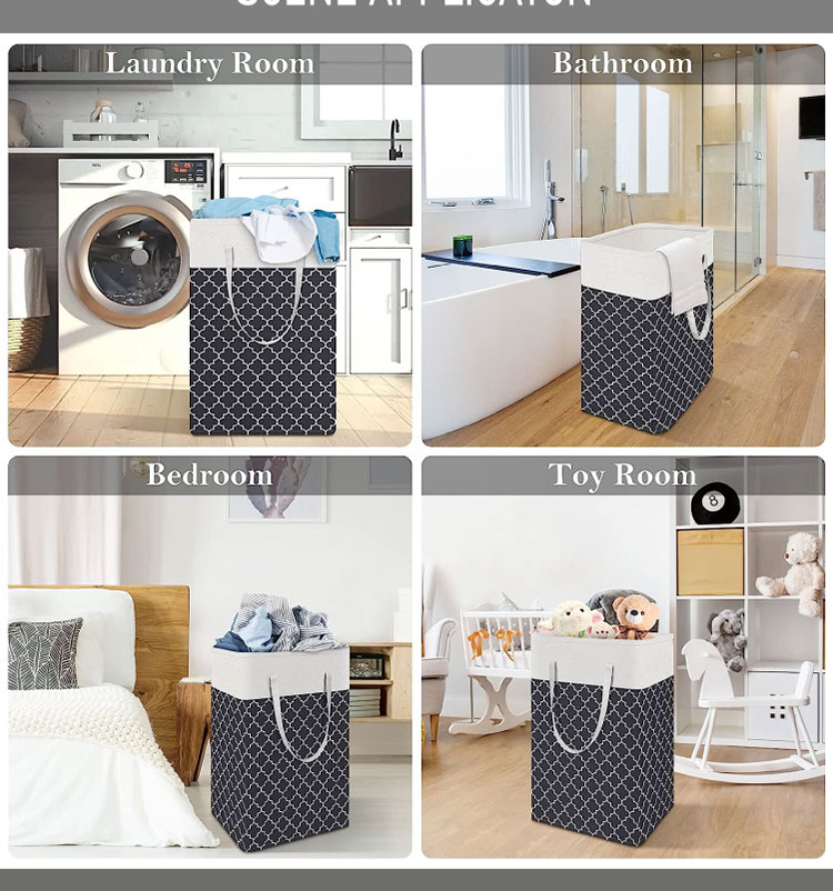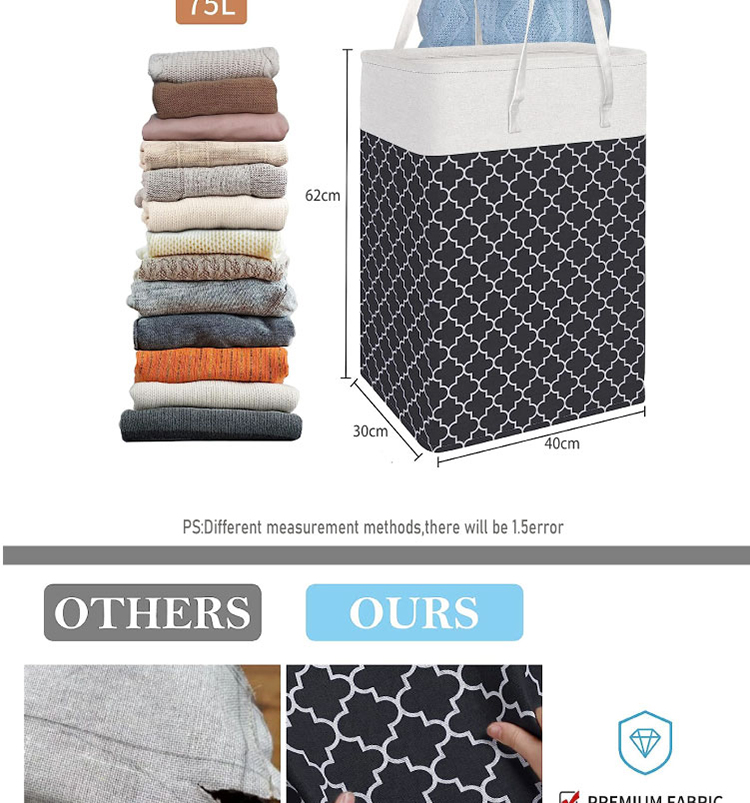 Freestanding Structure: With a sturdy iron wire frame sewn into the top edges, so the laundry basket stands firmly upright for a very long time even when empty. Simply stretch the dirty clothes hamper out and it will stand upright on its own.