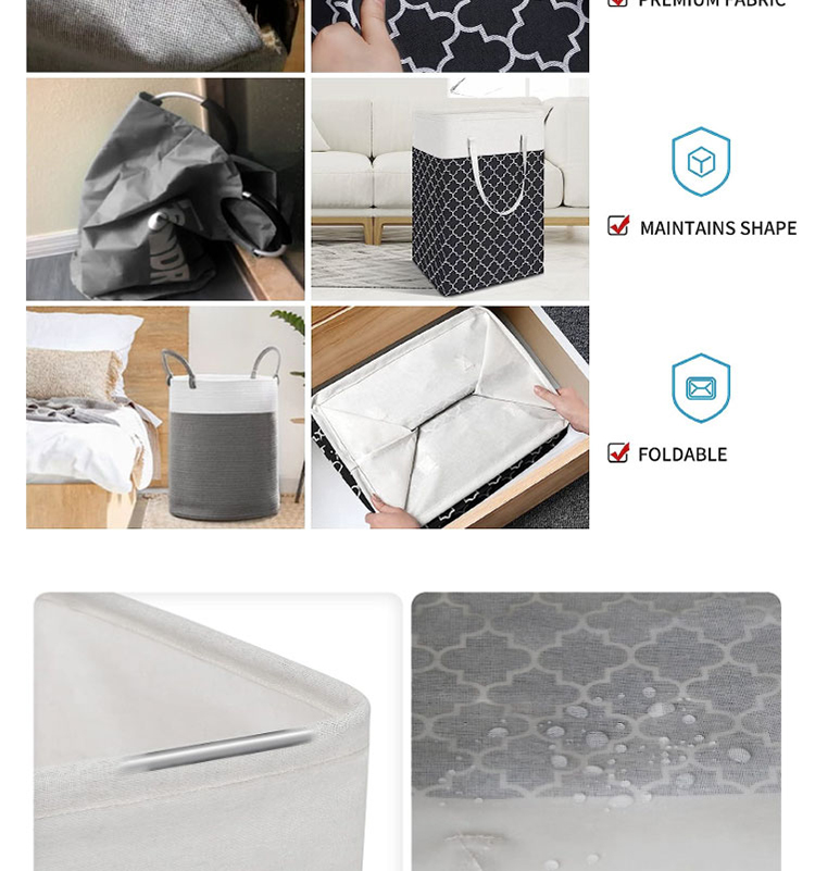 Premium Material: The foldable clothes basket is made from thick polyester and primuin cotton. The interior features PE waterproof coating can keep stored items dry. Simply use a wet cloth to wipe off the dirt. Do not clean it in washing machine and dryer, as doing so may damage the leakproof PE coating.