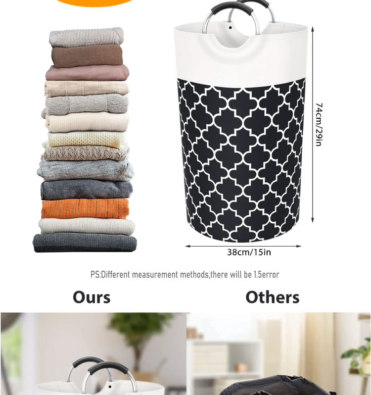 SIZE:Our laundry hamper has a large capacity and can hold clothes for the whole family. strong and sturdy. And we have three different sizes, you can choose according to the size of the family.