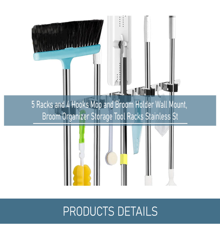 [Organizing & Saving Space]-The broom and mop organizer wall hanging with 5 Racks and 4 Hooks organizer your brooms, mops, rakes, garden tools, laundry room storage and more, efficiently uses the wall space. The mop rack provide additional hanging space for miscellaneous items , expanding its life space invisibly.
