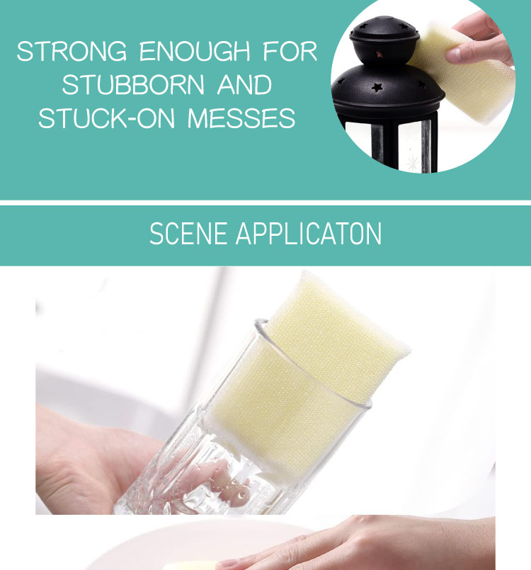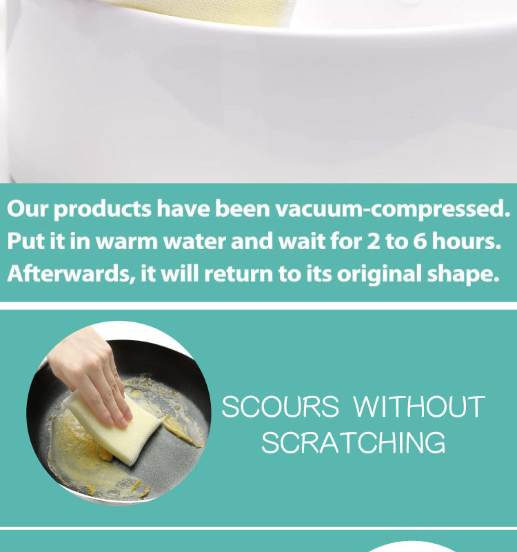 All-purpose and non-scratch. Safe on: Non-stick cookware, dishes, countertops, aluminum, cast iron, enamel, porcelain, appliances, fruits, vegetables, tiles, shower doors, fixtures, walls, carpets, and more.