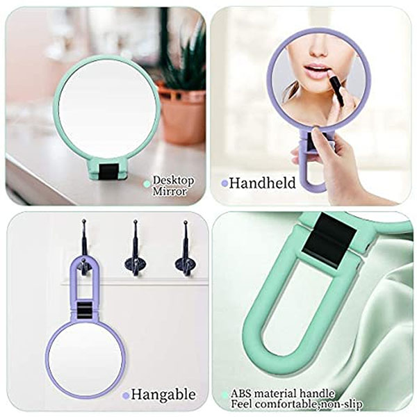 【360°ROTATION PEDESTAL】multi-use Design , A Flexible Foldaway Handle Which Can Rotate Multiple Angles, Can Be Used As A Hand Mirror, Tabletop Mirror, And Hanging Mirror. Easy To Carry And Pack.