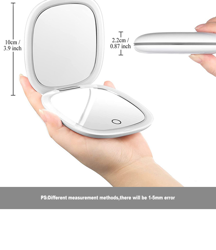 【Ring Light both Side as You Want】- Unlike other led compact mirror that either have lights on the 1X magnifying mirror side or a light on the 10X magnifying mirror side, we have innovated to configure adjustable three-color lights on both sides, which fully satisfies your' needs for light. The magnetic switch design will make the travel makeup mirror easier to open the mirror without damaging your beautiful nails.