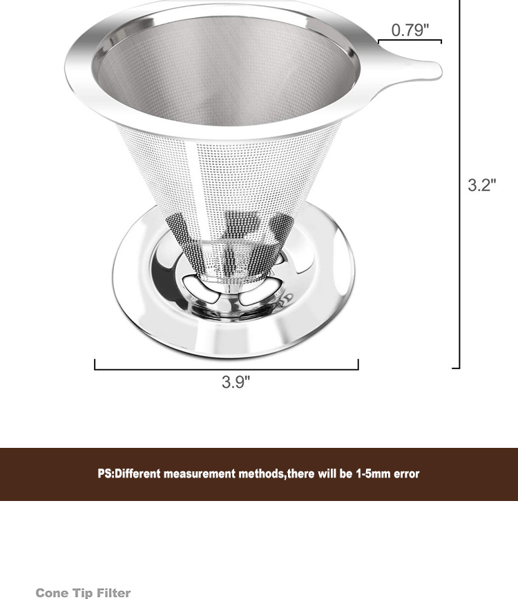 【WIDE CUP STAND】A wide metal cup stand makes our over coffee filter strong, stable and safe to use while you pour the water; It’s sized to sit over most single cup mugs and smaller travel canteens.