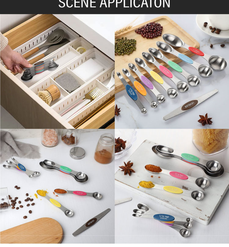Description:Measuring Spoons Set Stainless Steel Include 8 Double Sided Magnetic Measuring Spoon for Dry and Liquid Ingredients