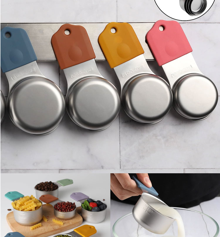 Goodbye, Guesswork: Keep your measurements exact and Freshness at Your Fingertips ! The flat base design of this measuring cup set with spoons prevents any spillage or mess. Don't worry about the handles either - they won't bend or break easily.