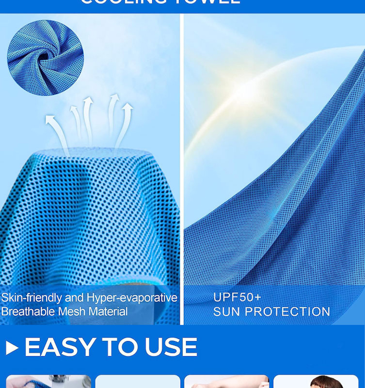 INSTANT COOLING, REUSABLE - Hyper-evaporative breathable mesh material makes it easy to activate the chilling towel when you simply soak, wring out and snap it. The unique cooling system uses moisture from the towel to draw the sweat away from your skin to keep you cool. Everyone can use the cooling towel, even pets.