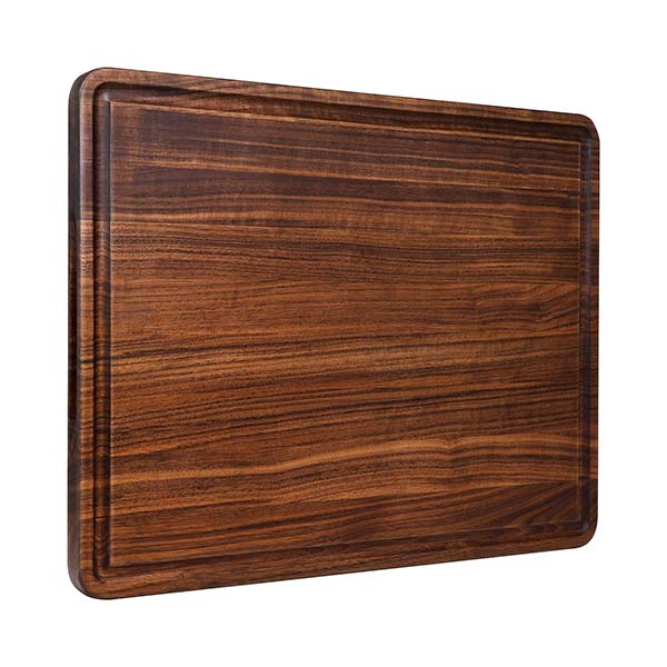 KNIFE FRIENDLY – This all-natural board has perfect solidity and softness to prevent from blunting your knives. As with all wood cutting boards, it may show some knife marks, but when cared for properly (instructions in the box) it will preserve the rich color and last longer.