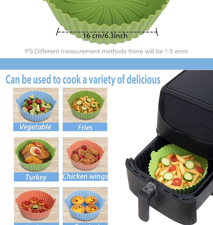 Description:Air Fryer Silicone Liners - Reusable Non-stick Air Fryer Silicone Pot Liner 100% Food-Grade Silicone Pot Oil Guide Groove Design