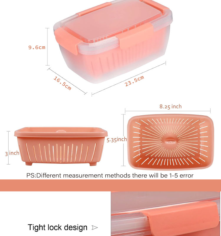 Description:Berry Keeper Container, Fruit Produce Saver Food Storage Containers with Removable Drain Colanders, Vegetable Fresh Keeper Set