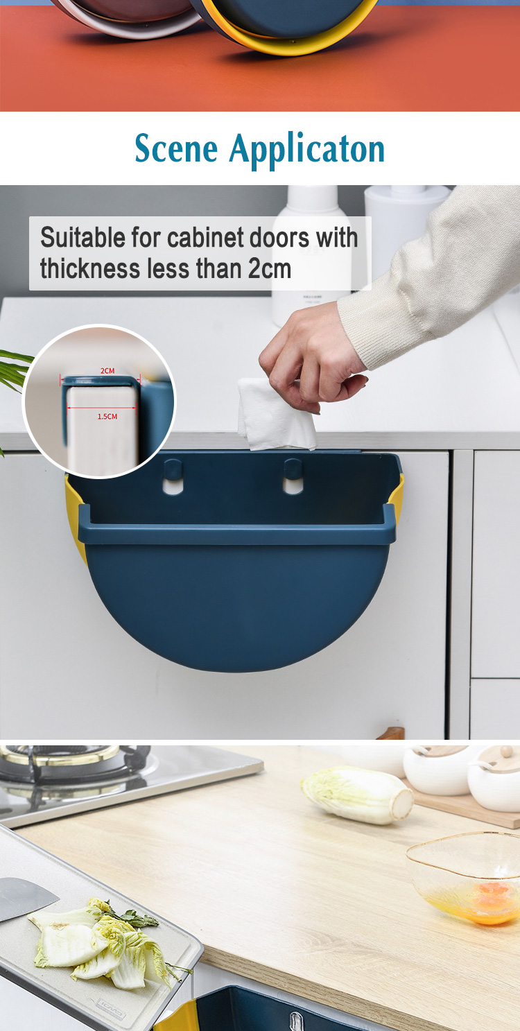 【Easy To Install & Use】The collapsible trash can is easy to install, simply attach the compact folding trash can to any cabinet drawer or door. No need to constantly open and close the waste bin with wet hands when you're cooking fresh food.