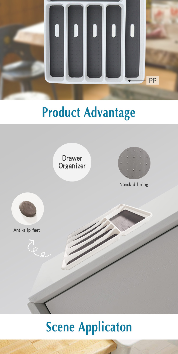 SILVERWARE SET: This silver flatware set with silverware organizer includes 8 of each: Dinner Spoon, Teaspoon, Dinner Fork, Dessert Fork, Dinner Knife, Steak Knife, Plus 1 durable plastic non-slip flatware organizer to sort your cutlery. The Silverware tray has six cells of different sizes, matching all kinds of tableware.