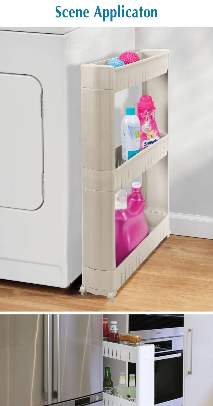 SPACE SAVING-5.1inch width is suitable for narrow corners, such as kitchen, bathroom, laundry room, office. It can make better use of space and store odds and ends.