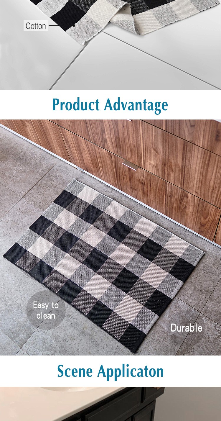 COTTON MATERIAL: This black and white rug is made of 60% cotton and 10% anti-aging ingredients, making it more suitable for outdoor use. The eco-friendly fabric is great at water absorption, antistatic, and is soft and durable. Please note that there may be a 1-inch deviation due to hand-cutting and sewing.