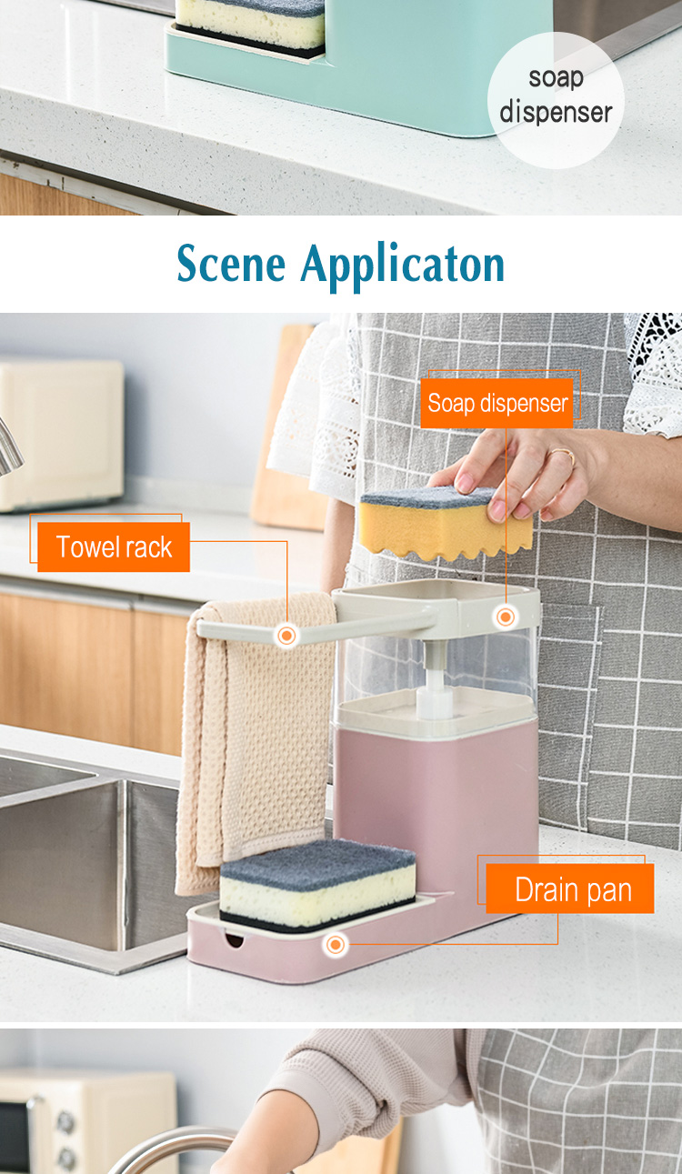 Leak-Free Design: Our dish soap dispenser with sponge holder doesn't leak, spill, or leave a trail because of how small it is. Taking off the top layer makes it easy to get rid of excess water.