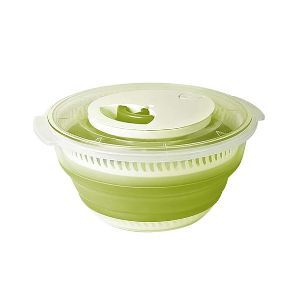 Collapsible salad spinner easily preps delicious salads, washing and mixing leafy greens for a tasty, healthy treat