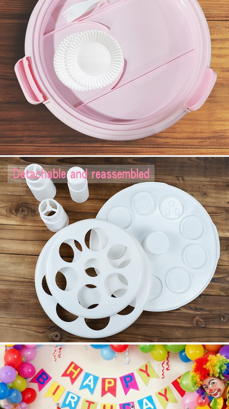 *Design: Our cake stand is a multi-layer design, exquisite workmanship, solid and reliable products, large base area, good stability, and strong bearing capacity of the fruit plate. The support rod is thickened and equipped with a portable handle, which is convenient to carry, practical and beautiful, easy to clean, and can save your space