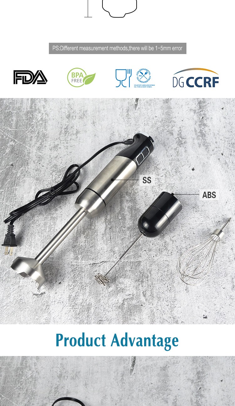 Powerful and Fast – This hand blender electric equipped with an enhanced upgraded 1000 Watt high power copper motor,which makes blending task faster with Low noise. In contrast to common motors, copper motor promises 3X longer service life.