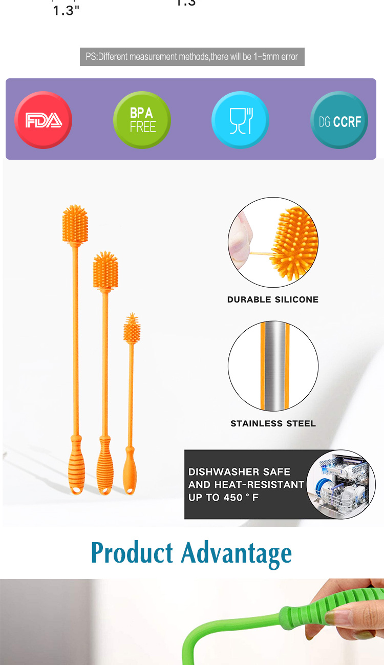 【Better Brush For You】Our silicone bottle brush cleaner brush repels unpleasant odors, stains, - unlike sponge and nylon brushes - preventing nasty stains build-up which is more healthier for your family. You will no longer worry about the smelly sponge bristles, it may replace all bottle brush in your home .