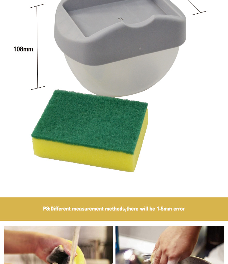 Description:Sponge Holder for Kitchen Sink Dish Washing Soap Dispenser 13 Ounces