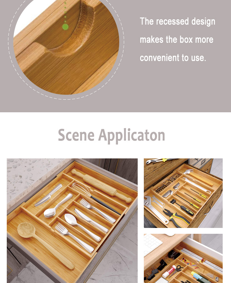 Sturdy and environmentally friendly utensil drawer organizer with high quality bamboo construction. Reinforced with high performance engineering materials.