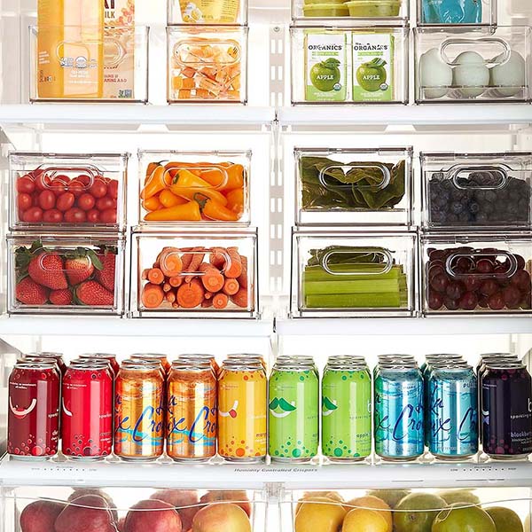 【Ideal Storage Choice】: The refrigerator organizer is great for creating a clean and organized refrigerator or pantry. Ideal for fruits, meat, milk, salad dressing, drink bottles, canned food, and packaged food, condiments, jelly, and more. So easy to keep clean and contain spills.