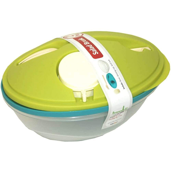 Salad kit includes 2 bowls, 2 lids, 1 fork, and 1 salad dressing container