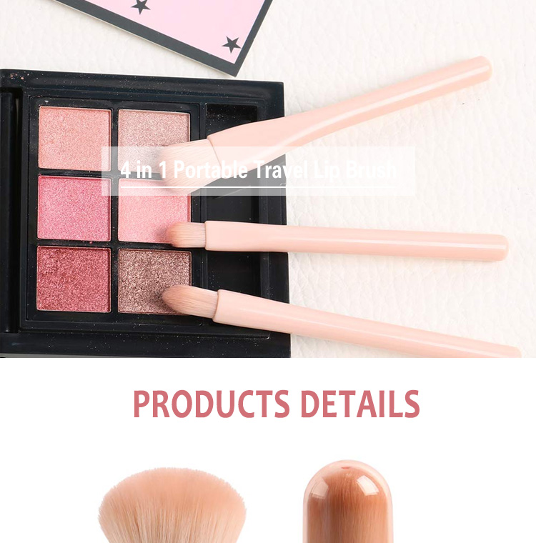 -PORTABLE MAKEUP BRUSH SET: A 4 in 1 set of must-have face brushes that help create full face looks, all housed in a samll sleek carrying case. 1 pcs angled powder /blush/blender brush,1 pcs blending/highlighter brush,1 pcs eye shadow brush and 1 pcs lip brush.