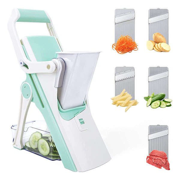 【Slicer & Julienne】 Mandoline Slicer can finish slicing and shredding of different thicknesses. Equipped with 5 different blades:1.5mm/2.5mm/3.5mm slicer blades, 3x3mm/3x6mm grater blades. Suitable for slicing & shredding all kinds of frozen meat, vegetables and fruits. Make your cooking simple and efficient.