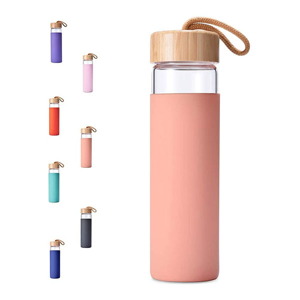 REUSABLE AND REFILLABLE borosilicate glass drinking bottle; saves plastic waste and is free of BPA, PVC, Lead, and Cadmium for safe and pure water.