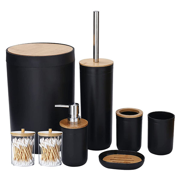 Bathroom Accessories Set: 6 pieces bathroom accessories, including 1*toothbrush holder, 1*toothbrush cup, 1*soap dispenser, 1*soap dish, 1*toilet brush holder,1*trash can,