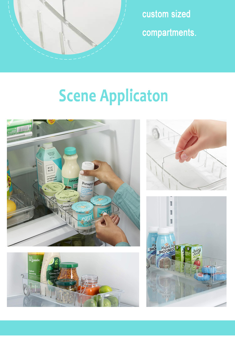 ADJUSTABLE: Includes 2 adjustable dividers to create custom-size compartmentsWHEELS: Wheels roll items from the back of the fridge for an easy findHANDLES: Caddy is made to carry around with sturdy handlesBPA-FREE: BPA-free, safe storage that’s easy to cleanSTANDARD FIT: An extra drawer designed to fit standard refrigeratorsQUICK SET-UP: Just load items and roll out, no assembly required