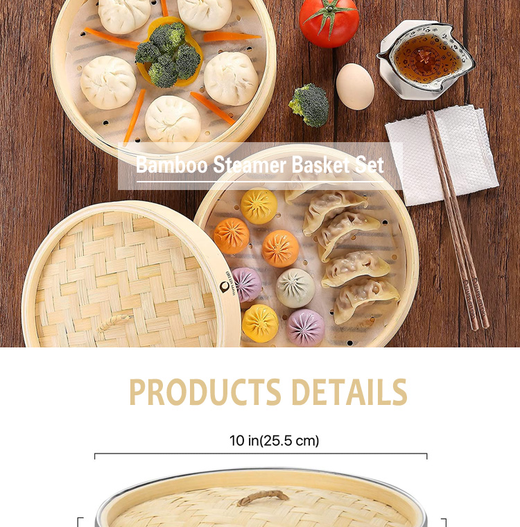 Structure and Design: This dumpling steamer is Made with 100 percent natural bamboo material for sustainable living and reinforced with stainless steel lining for durability and support. The dome-shaped lid and water-resistant walls help circulate heat. So you can still enjoy the crunch and freshness of vegetables.