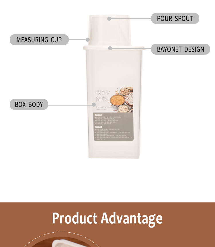PERFECT for KITCHEN STORAGE: Cereal container with measuring cup and pour spout, making every pouring clean and neat, volume of cup compare with rice cooker. The box with transparent body, so that you can see what was inside.