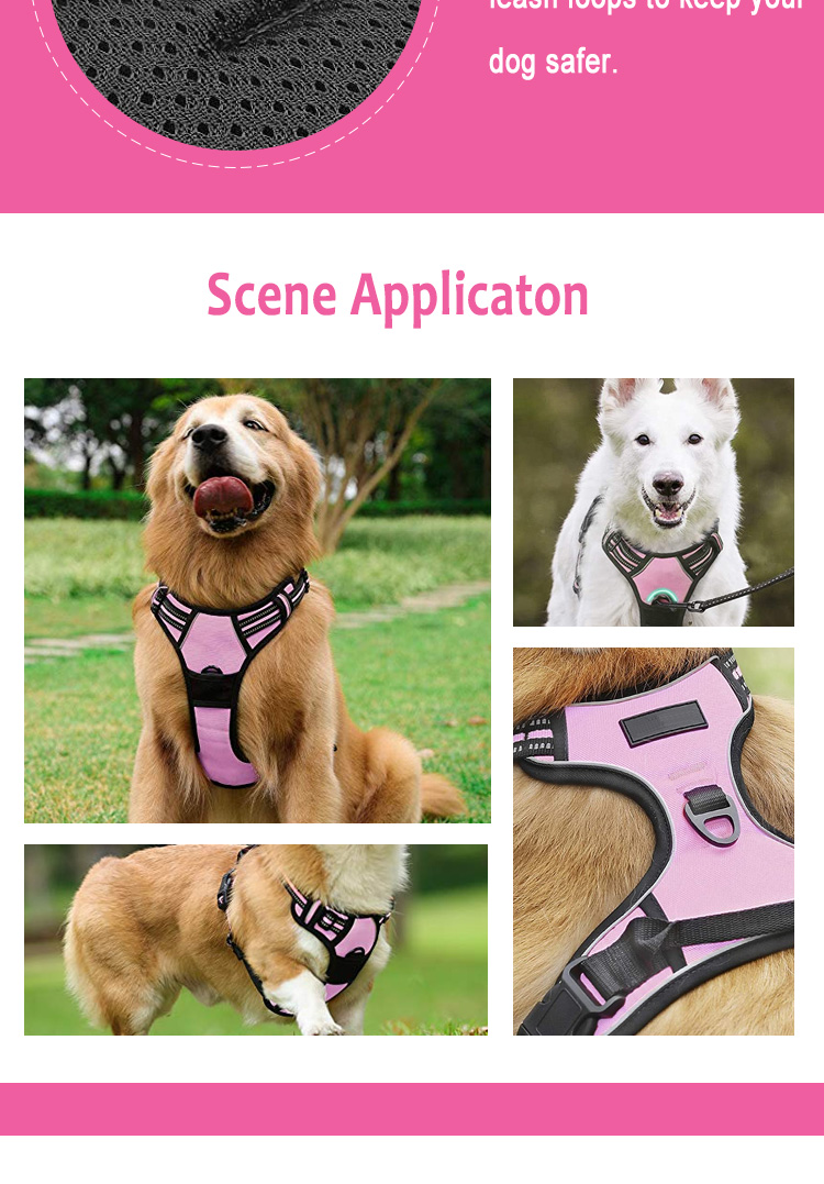 Safe and Comfortable - Your dog will enjoy the daily walk in this comfort dog harness! Made of durable nylon and padded with soft cushion to protect your dog's skin. Breathable air mesh keeps your dog cool during outdoor activities. Super bright reflective strips ensure a safe walk both day and night.